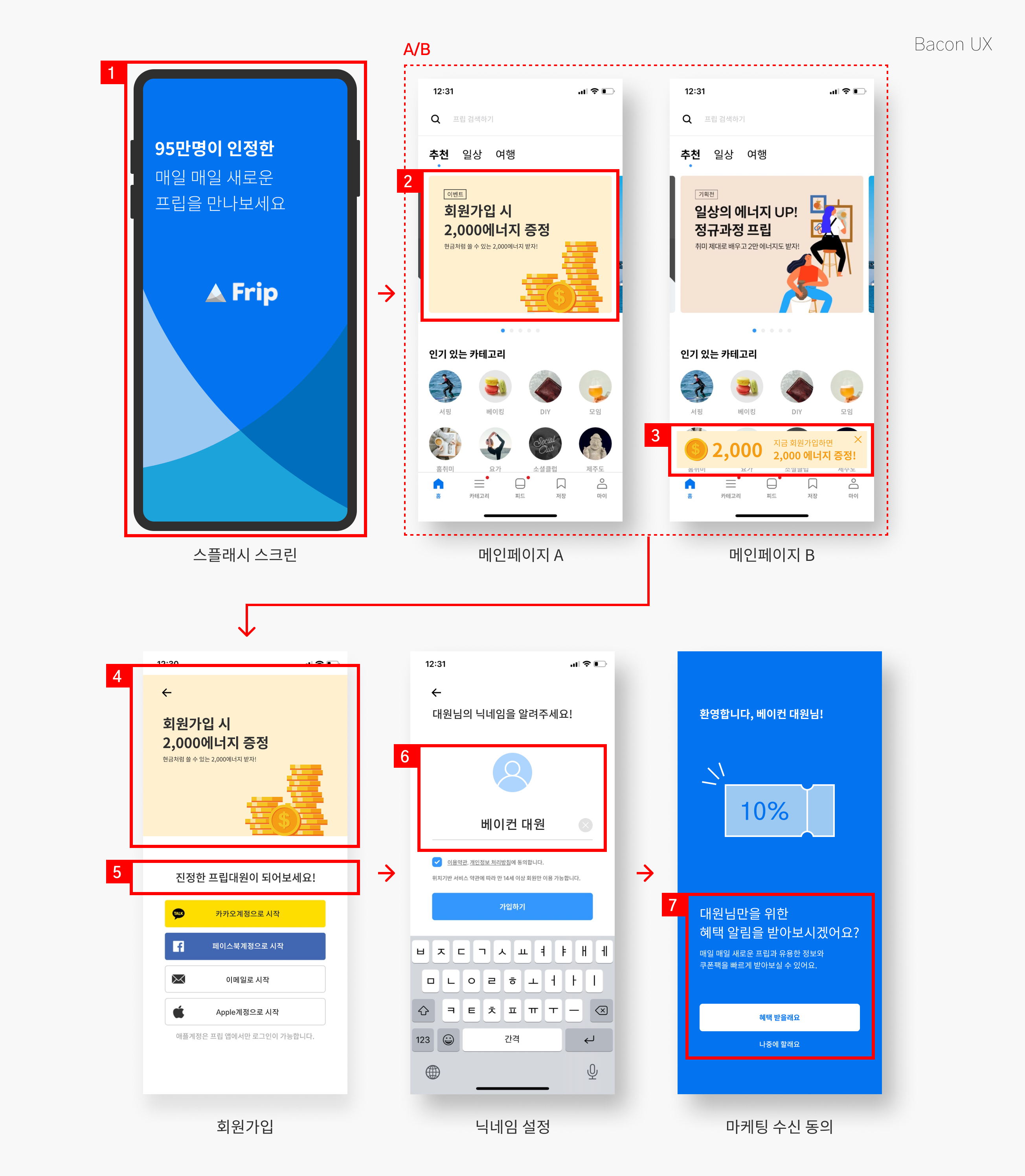 프립의 회원가입 프로세스 개선을 위한 연구 과정은 다음과 같다.