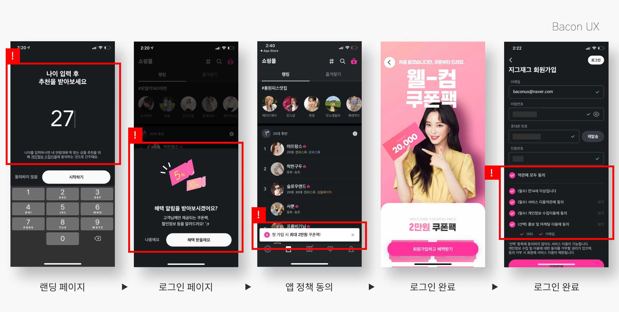 2000만 다운로드를 기록한 여성 쇼핑 앱 지그재그는 서비스 이용 의도를 파악한 UX Writing과 사용자가 얻을 수 있는 혜택과 유익한 정보로 회원가입과 마케팅 수신 동의를 유도한다. 필자는 이러한 통 큰 혜택에 '대규모 투자유치 서비스의 바람직한 생색내기'라고 생각한다.