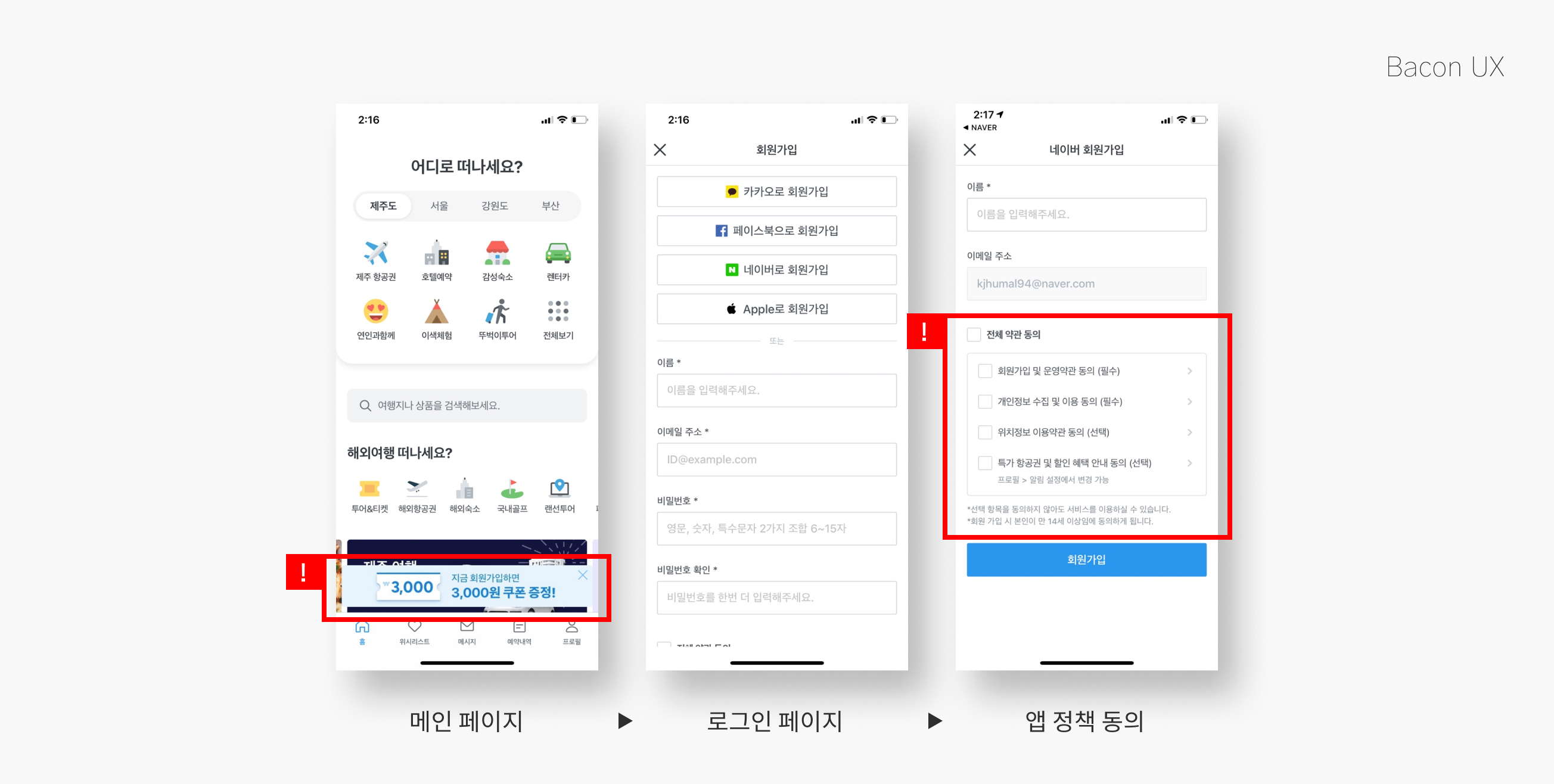 이와 같이 다양한 회원가입 프로세스를 적용한 다른 앱 사례를 찾아보자.