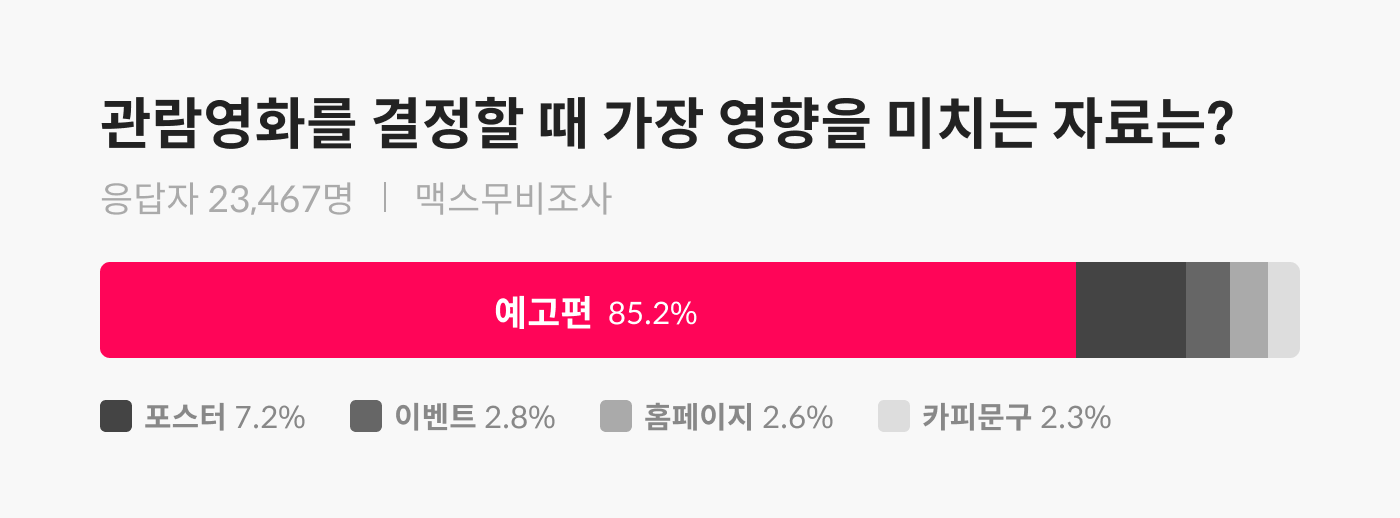맥스무비의 조사에 따르면 관람객의 85%가 예고편에 영향을 받는다고 한 만큼 시각 자료를 통해 영화의 전반적인 정보를 제공하는 것은 사실 공신력이 높은 제공 방식입니다. 또한 이미지, 영상 매체를 통해 유저에게 어필을 할 경우 언어의 장벽을 쉽게 넘어설 수 있습니다. 더 나아가 넷플릭스의 강점인 '포스터 개인화 추천' 기능이 빛을 발할 수 있는 효율적인 ui 화면이기도 합니다.